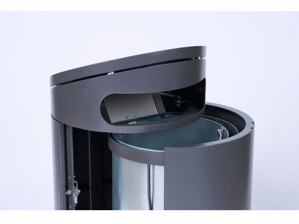 Runder Standbehälter zum Einsatz von Müllsäcken mit Aschereinsatz.
