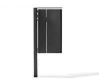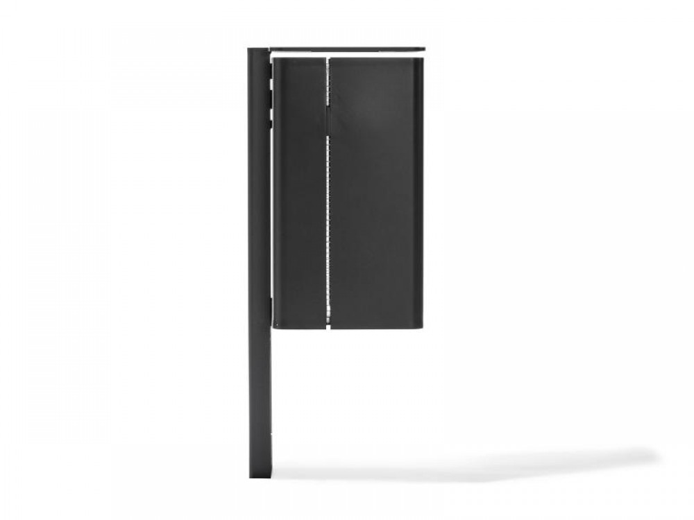 A14KAD-S56: Ständer zum Einbetonieren, Bodenplatte zum Verdübeln (Option), Ascher im Dach. Inhalt: 56 l.