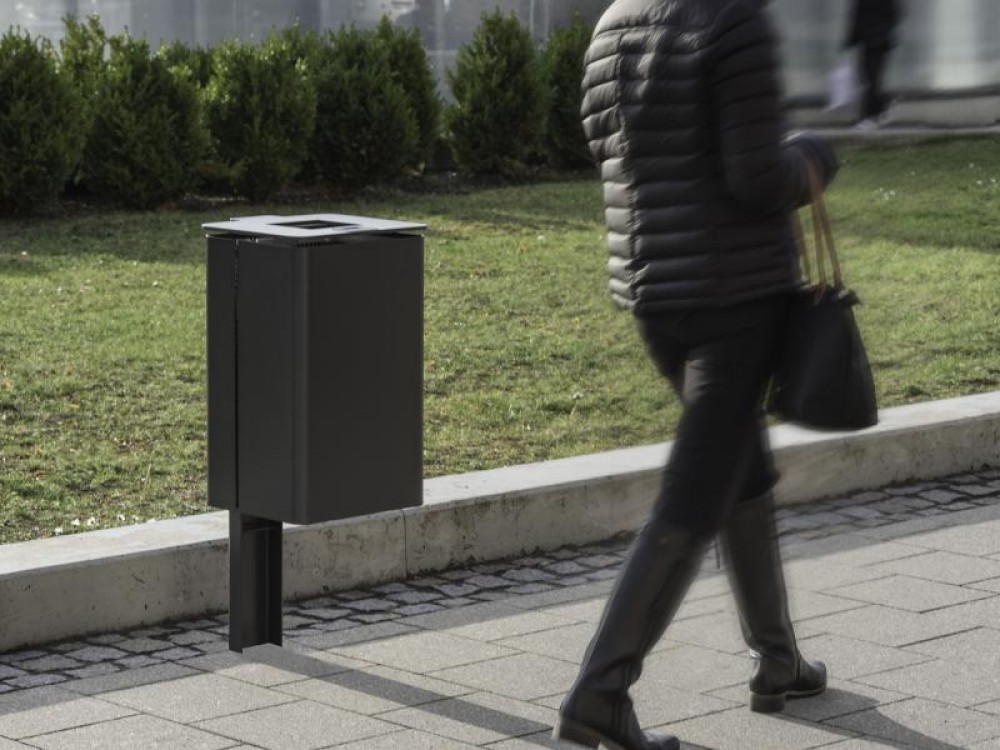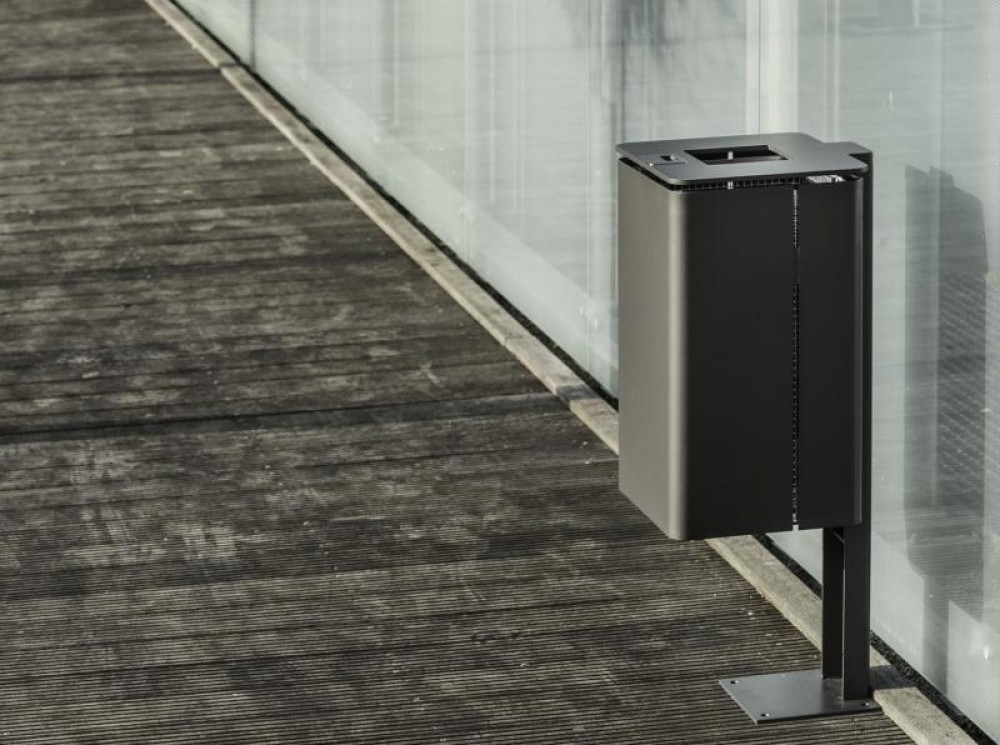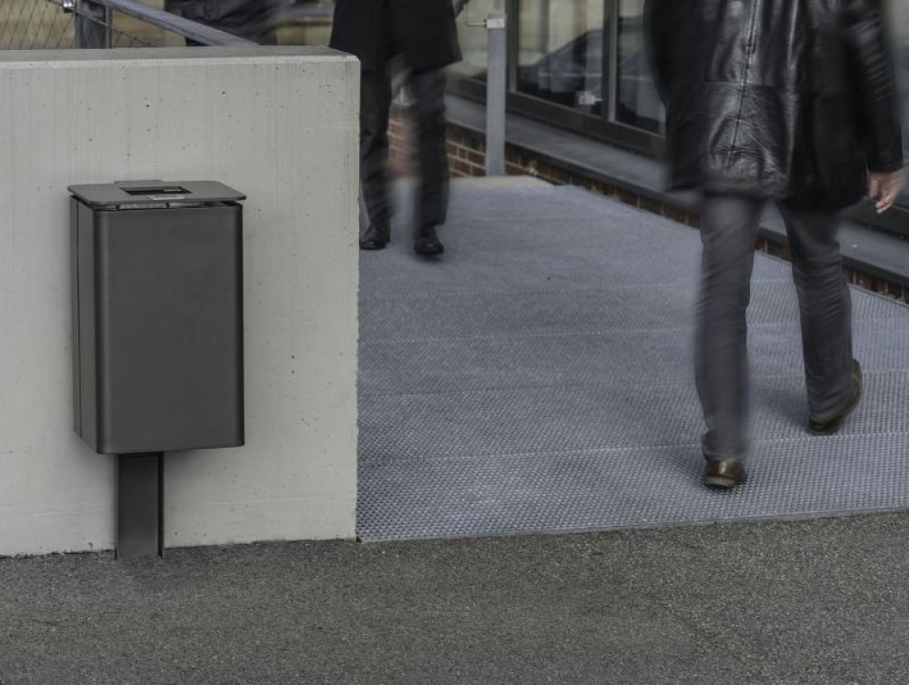 Kombination aus Abfallbehälter A14K und im Dach integriertem Ascher KAD.