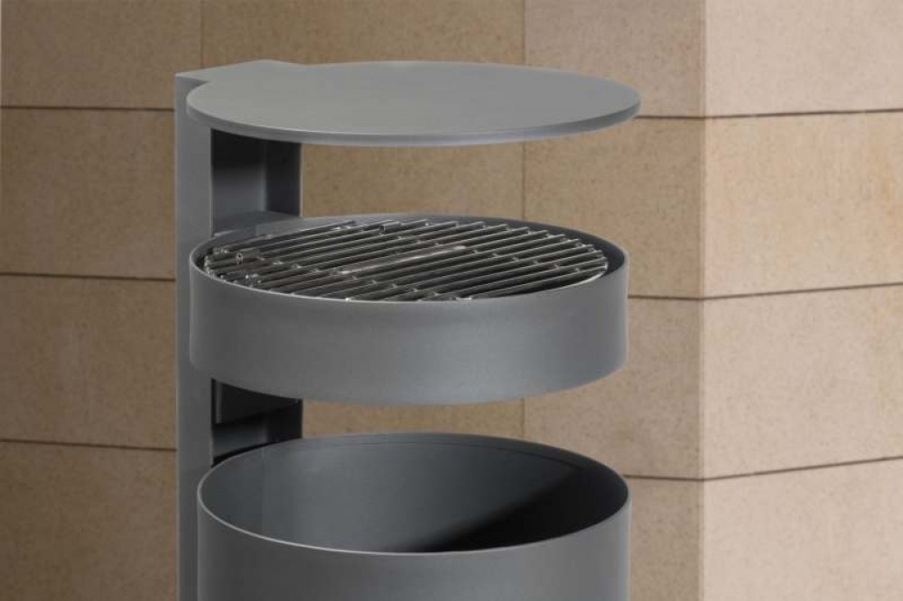 Kombination aus PROFIrund mit aufgesetztem Ascher und flachem Dach an U-Profil-Stütze.