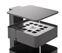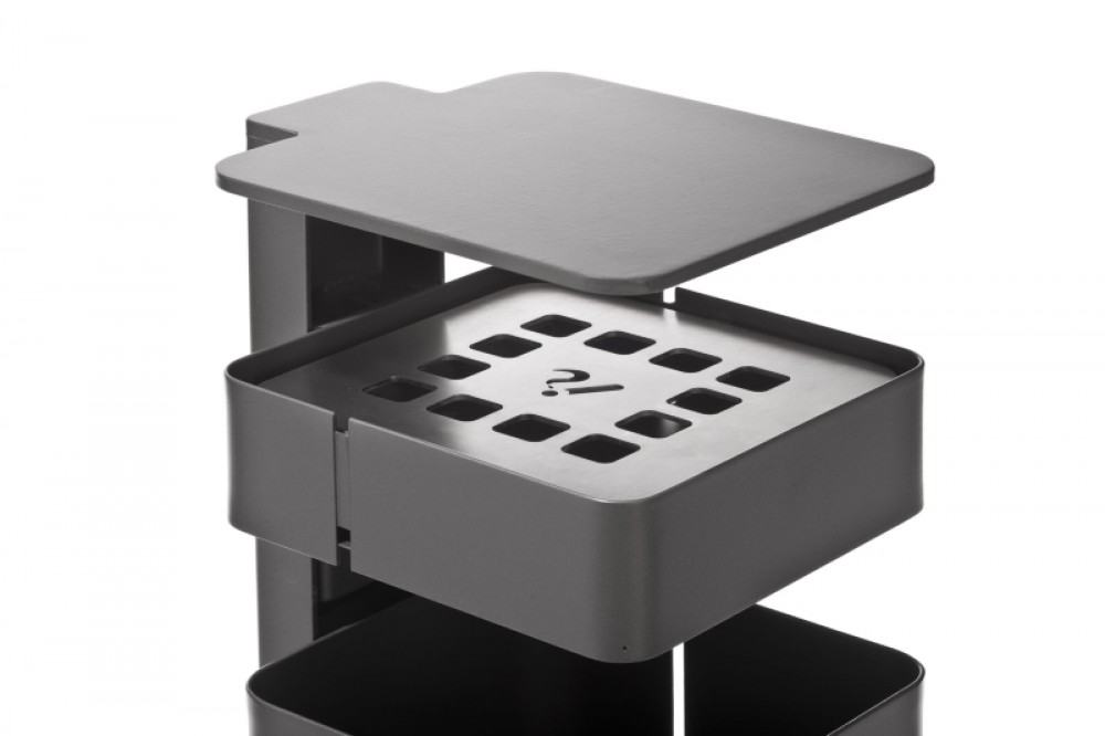 Abfallbehälter: Sekundenschnelle Entsorgung: Dreikantschloss entriegeln – Behälter kippt vor. Behälter oder Einsatz (Option) entnehmen und leeren. Behälter ins Schloss drücken – fertig!