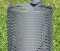 Stahlblech oder wahlweise Lochblech, feuerverzinkt. Behälterkanten gebördelt. Sicherung mit 7 mm Dreikantschloss. Gesichert gegen unbefugte Behälterentnahme.