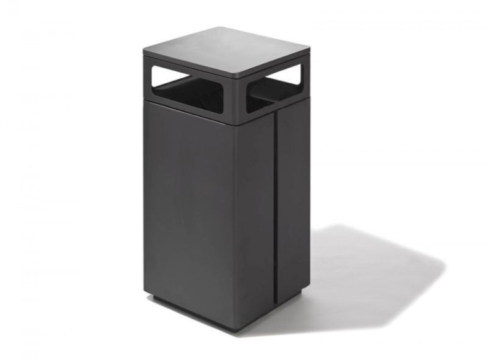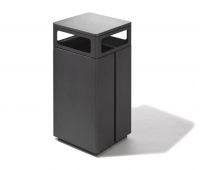Eckiger Standbehälter mit flachem Dach zum Einsatz von Müllsäcken.