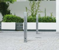 Absperrpfosten aus Vierkantrohr, feuerverzinkt. Herausnehmbarer bzw. kippbarer Pfosten mit Sicherung durch 18 mm Dreikantschloss. Beim Einbringen selbsttätige Verriegelung.