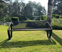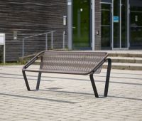 Sitzfläche aus Lochblech Edelstahl, beschichtet mit RAL- bzw. DB-Farbe - wählen Sie ihre Lieblingsfarbe, oder Holzleisten FSC® zertifiziertem Hartholz (SCS-COC-001802) - Leisten 1.775 x 45 x 28 mm.