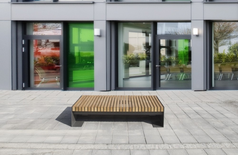 Bank im Großformat mit Flachstahlfüßen feuerverzinkt und pulverbeschichtet.