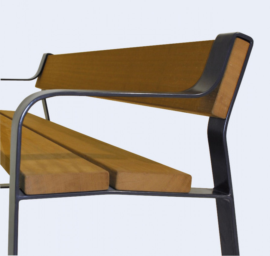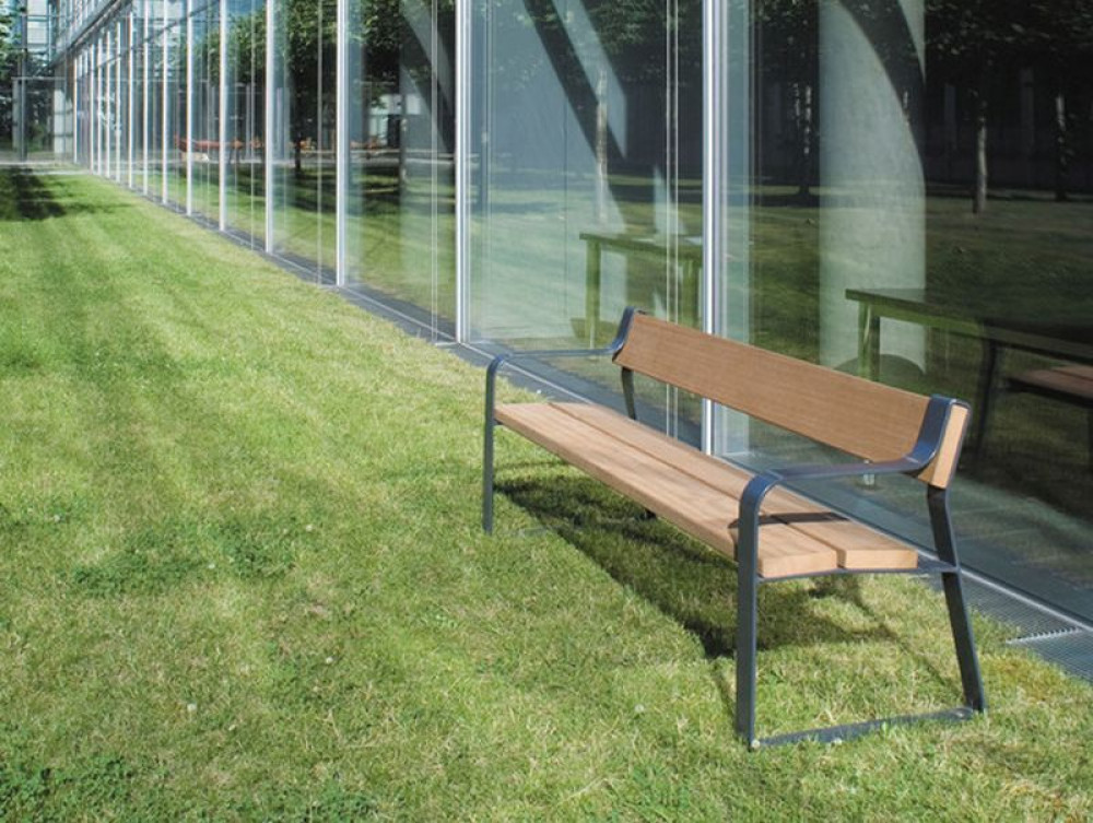 Bank mit Rückenlehne, Gestelll aus Flachstahl, feuerverzinkt und beschichtet DB 703 Strukur zum Aufdübeln.