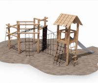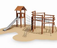 Feuerwehrrutschstange, Strickleitern, schräges und vertikales Kletternetz, Kletterwand, Stangenrutsche, Edelstahlrutsche