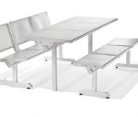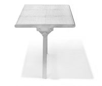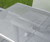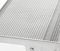 Gestell aus Edelstahl mit Lochblech (Quadratlochung) als Auflage.