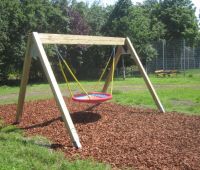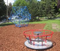 Den Kindern bieten sich nun neue und sehr vielfältige Spielmöglichkeiten. Aus dem Stausberg-Programm kommt eine Nestschaukel, ein Karussell, ein Kletterwürfel aus Stahl sowie ergänzend aus dem hochwertigen HAGS-Programm der große Spielturm Combur.