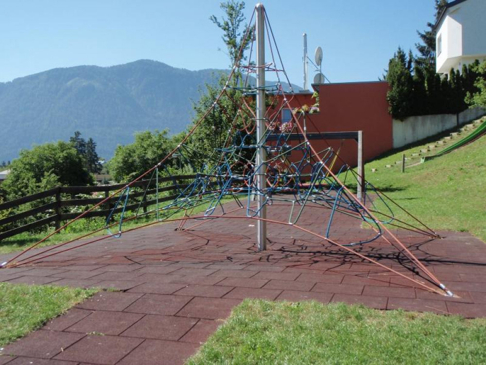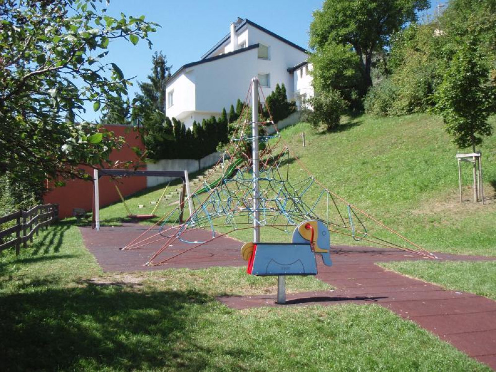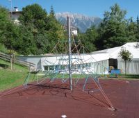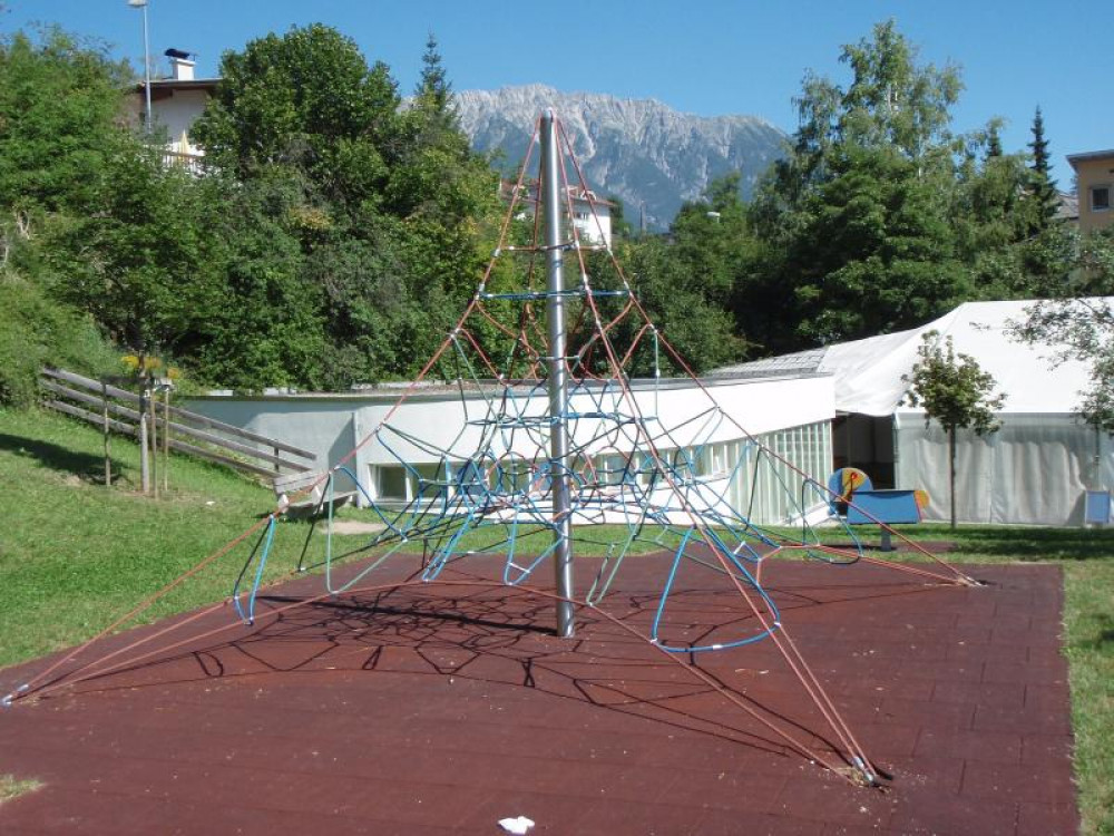 Oberhalb vom Rathaus Imst gelegen: Ein Spielplatz mit Blick auf die Stadt und die wunderschöne Bergwelt. Hier befinden sich seit Herbst 2008 eine Seilnetzpyramide Active 4000, eine Nestschaukel, eine Halteseilstrecke, um zum Einstieg der langen Kurvenhangrutsche zu gelangen. Ergänzt wird der Spielbereich durch die Federwippe "Jumbo" von HAGS.