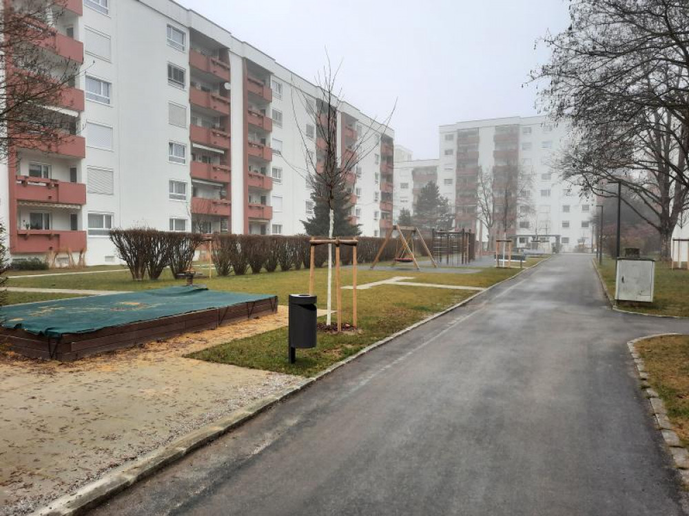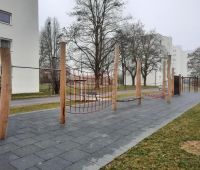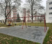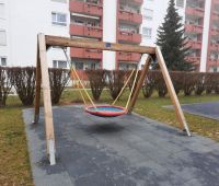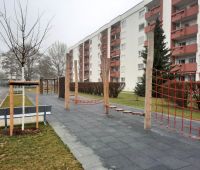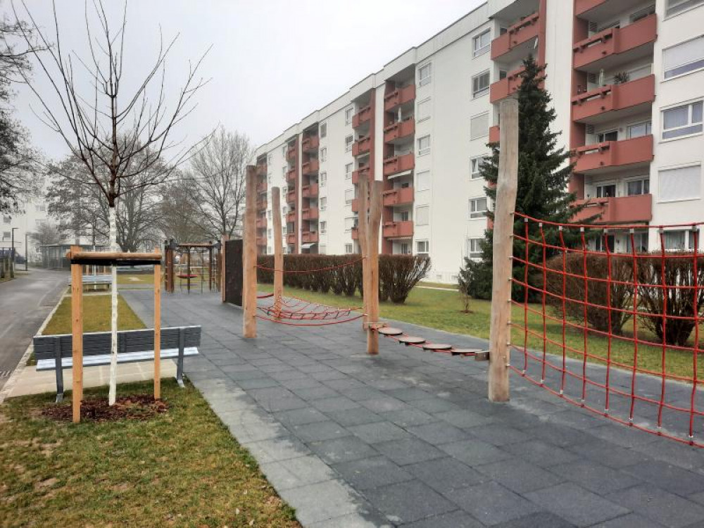 Im Zuge einer großen Wohnanlagensanierung der WAG Wohnungsanlagen GmbH in Linz, wurden auch die Außenbereiche neu gestaltet. Es wurden ein paar Bestandsgeräte neu versetzt wie z.B. die HAGS-Vierfachschaukel MIRA. Ergänzt wurde der Spielplatz mit dem Kletterquadrat CIXTONA sowie aus dem Stausberg-Programm mit einer Nestschaukel KDI, einem SYNTAL-Sandkasten und einer imposanten, ca. 20m langen Kletter- und Balancierstrecke.