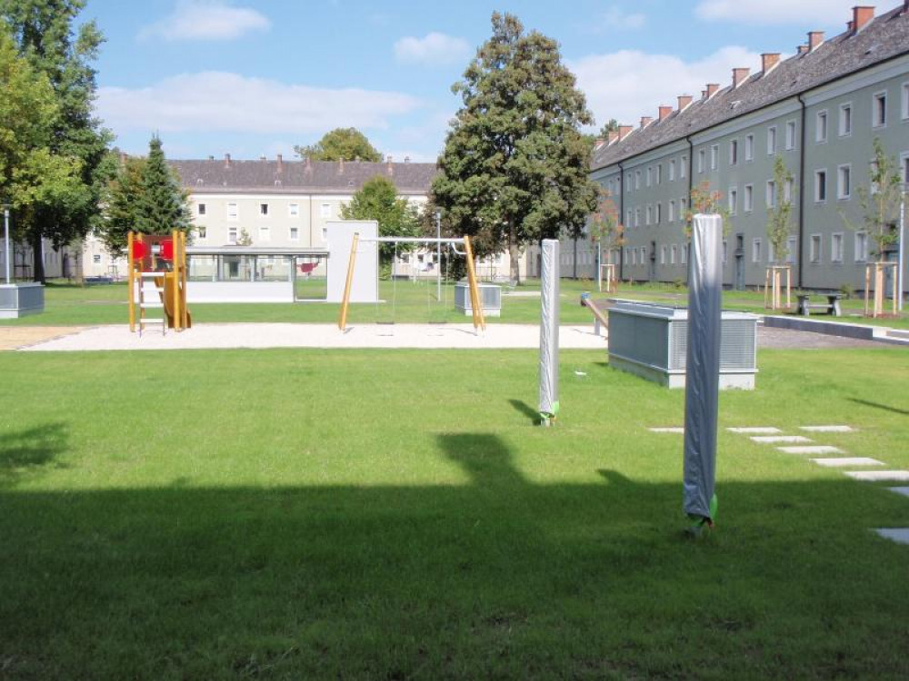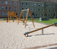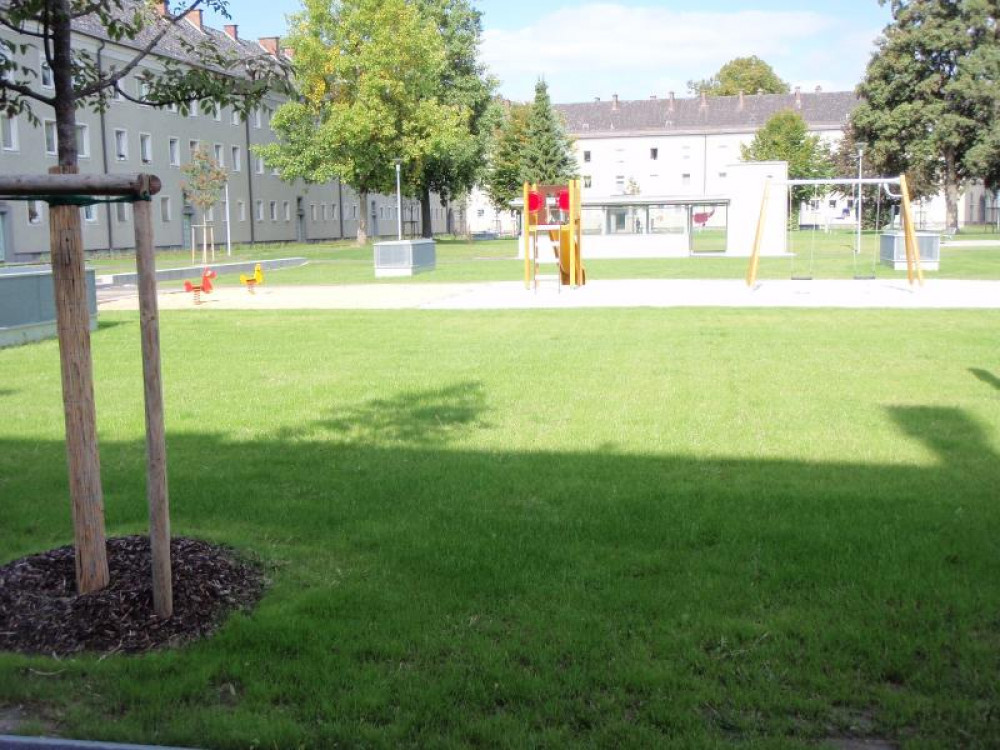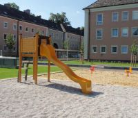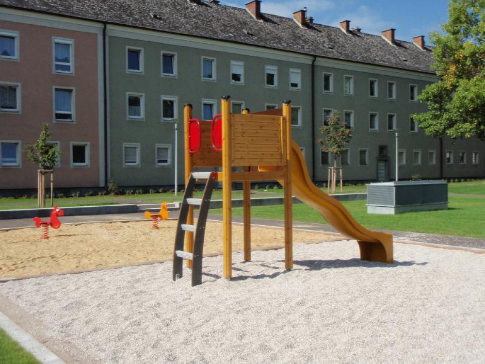 Die WAG hat im Sommer 2013 die Außenanlagen neu gestaltet und wir durften einige Spielgeräte dazu beitragen. Seitdem steht dort der Rutschenturm STEYR und eine 2-fach Schaukel GORO.