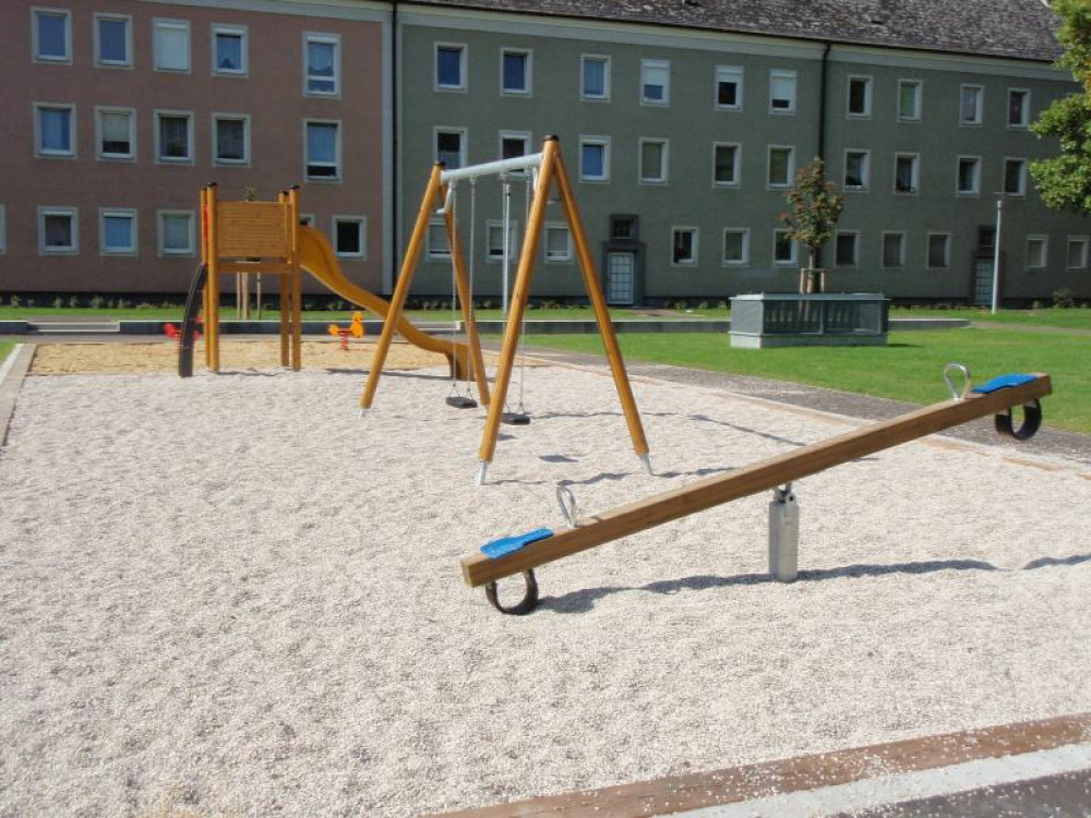 Ergänzt wird der Spielplatz durch Stausberg-Geräte mit einer Balkenwippe und 2 Federwippen.