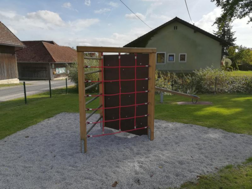Klein, aber fein. Der neue Spielplatz im Ortsteil Achleiten von Kematen an der Krems liegt zentral und eingebettet von einem schönen Baumbestand. Aufgestellt wurden ein Kletterdreieck mit Netz-, Kletter- und Sprossenwand, eine Balkenwippe und ein Robinienbalancierbalken.
