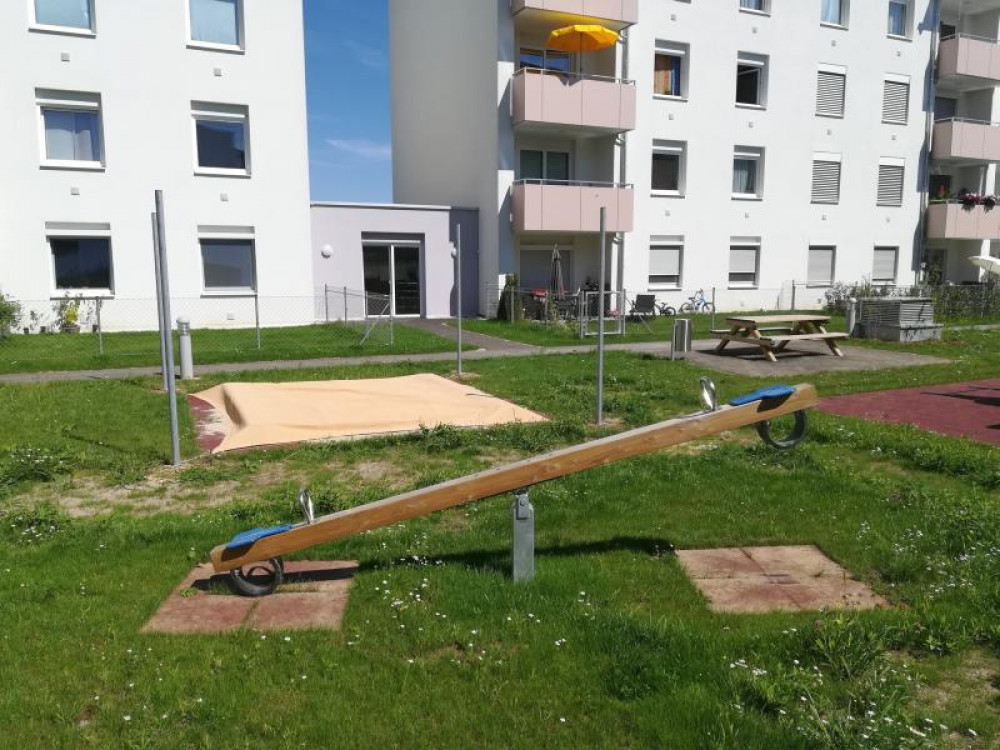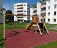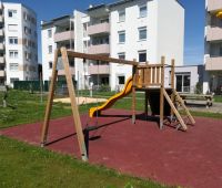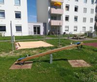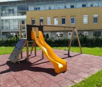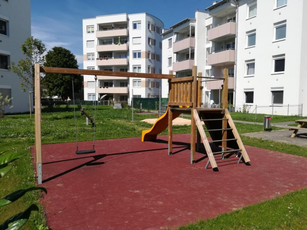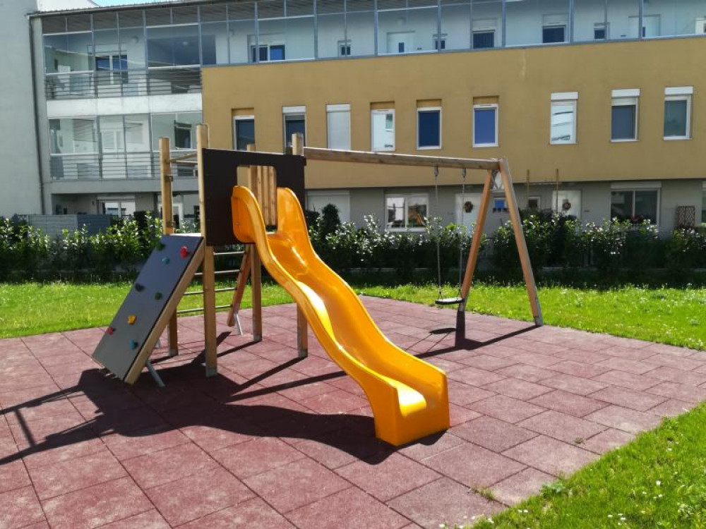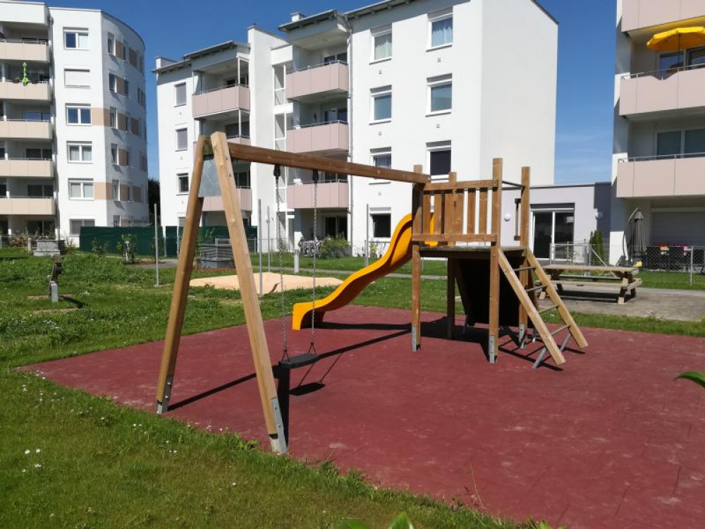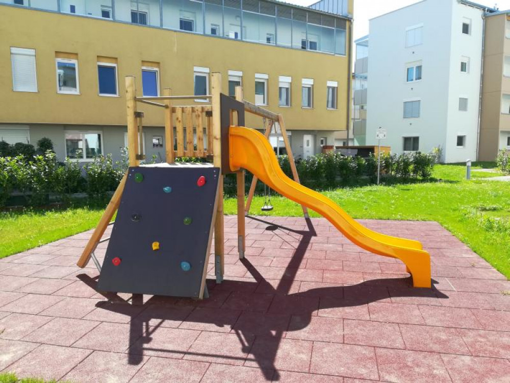 Den Außenbereich für die neue Wohnhausanlage, errichtet von der OÖ-Wohnbau, durften wir mit einigen Stausberg Eigenprodukten mitgestalten. Eine Schaukel-Rutschen-Kombi mit Kletterwand, eine Balkenwippe sowie ein Sandkasten mit Sonnensegel stehen hier seit Oktober 2016 den Bewohnern zur Verfügung.