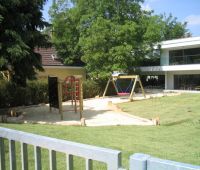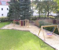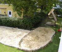 Im Frühjahr 2007 durften wir einen neuen Spielbereich für den Hort Aigner in Linz mitgestalten. Zur Ausführung kommen dort ein Klettersechseck mit Anbau-Hangelstrecke, eine Nestschaukel und zwei Spielhäuser, die teilweise mit Robinienpalisaden umrandet wurden.