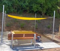 Ergänzt wird der Platz durch einige Sitzbänke AROSA mit dunkelbrauner Acryl-Belattung.