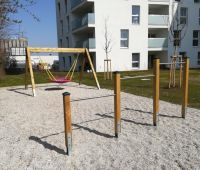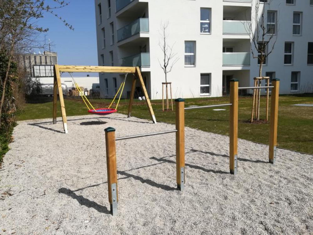 Wir durften dort aus Eigenfertigung eine Nestschaukel, ein 3-fach Reck und ein Sandkasten Syntal aus Vollkunststoff mit Sonnensegel liefern und montieren. Ergänzt wird der Platz durch eine Sitzgruppe Comido.