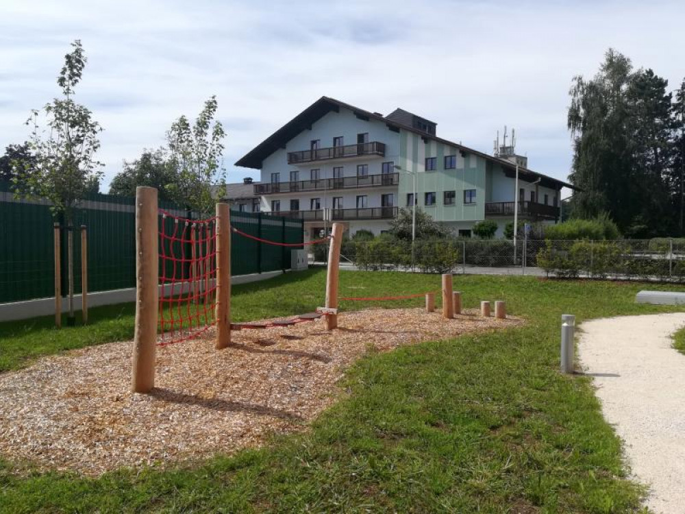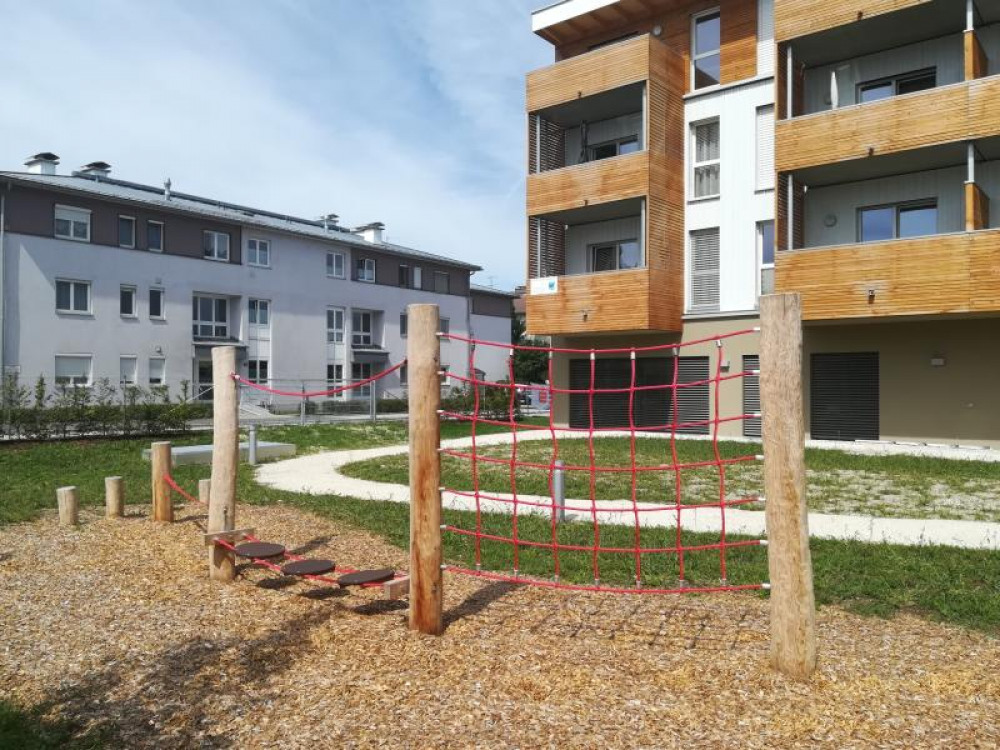 Für den neuen Generationencampus in Vorchdorf durften wir im Außenbereich eine Kletter- und Balancierstrecke aus Robinie liefern und montieren.