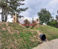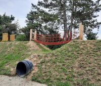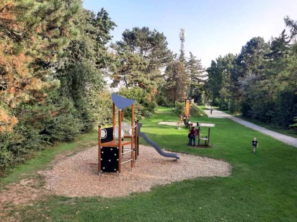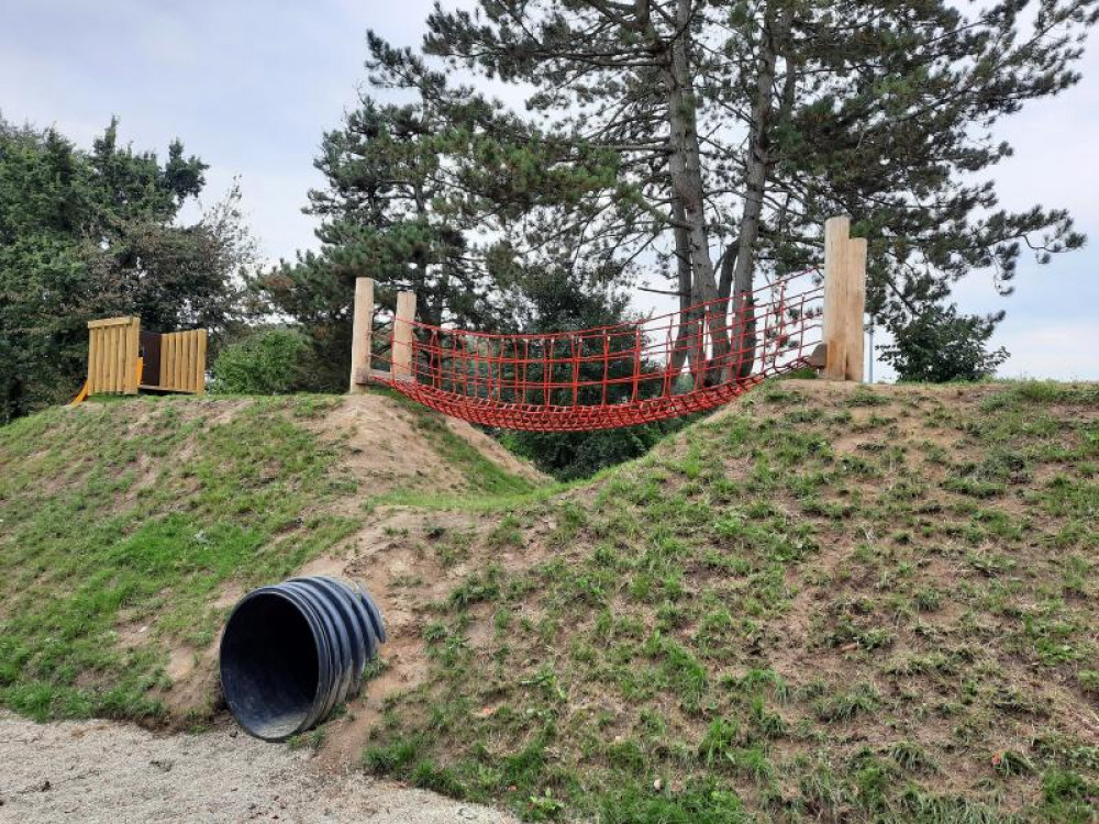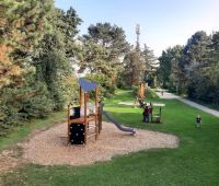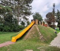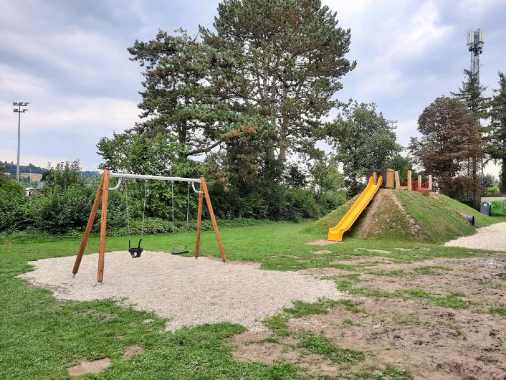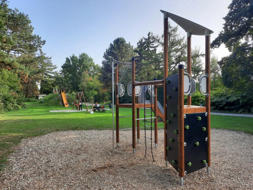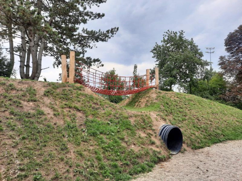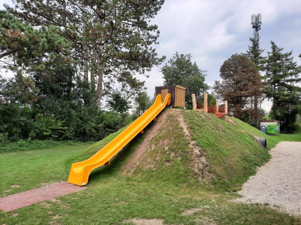 Die Stadtgemeinde Perg hat den bestehenden Spielplatz im Seyrpark erweitert. Es wurde ein großer Hügel aufgeschüttet, durch den ein Kriechrohr hindurchführt, darüber eine Hängebrücke, über die man zur langen Hangrutsche gelangt. Ergänzt wurde eine zusätzliche Doppelschaukel von HAGS.